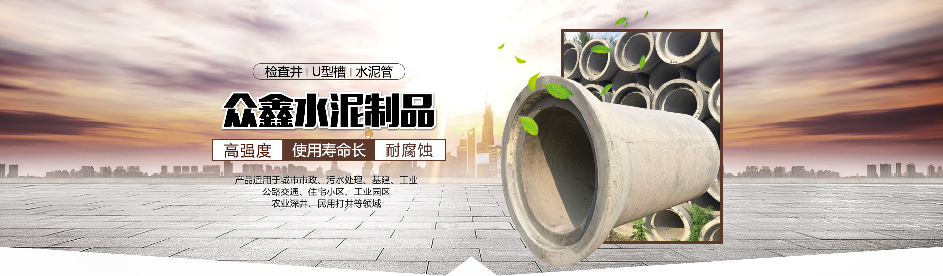 吉林眾鑫水泥制品有限公司,位于吉林省吉林市龍潭區江北鄉官地村,交通便利,廠區占地面積2萬余平,公司秉承客戶至上,信譽為首,以人為本,安全為先為經營理念,其主要生產各種規格的平口和承插口鋼筋混凝土排水水泥管,水泥預制檢查井、u型槽等水泥制品。適用于城市市政、污水處理、基建、公路交通、住宅小區、工業園區、工業、農業深井、民用打井等領域。